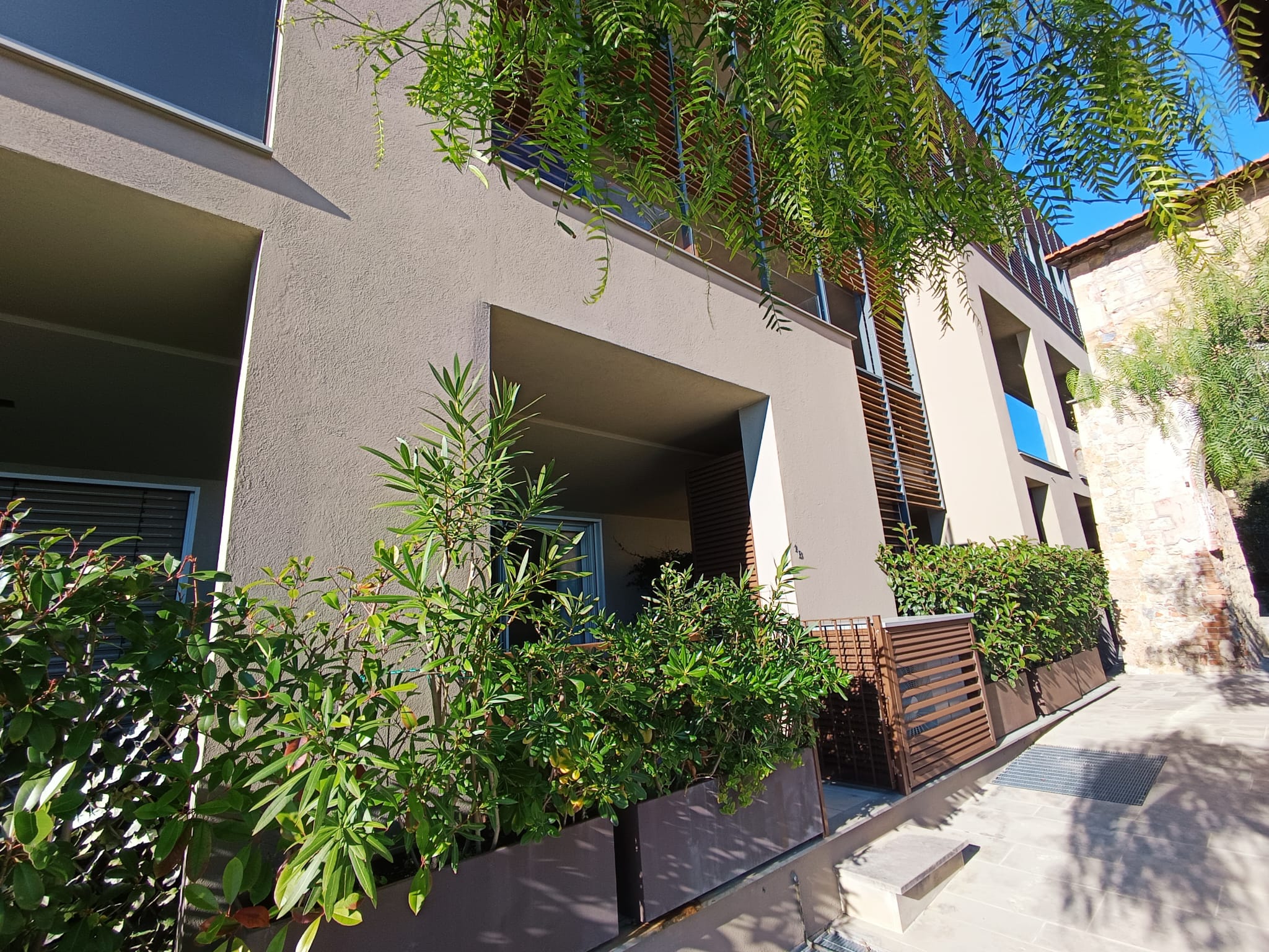 Guests have access to a relaxation area with a swimming pool/bio lake surrounded by greenery and a sea view; a solarium below is equipped with sun loungers and umbrellas. Access is via stairs and is available at set times. Seasonal service from June to September.